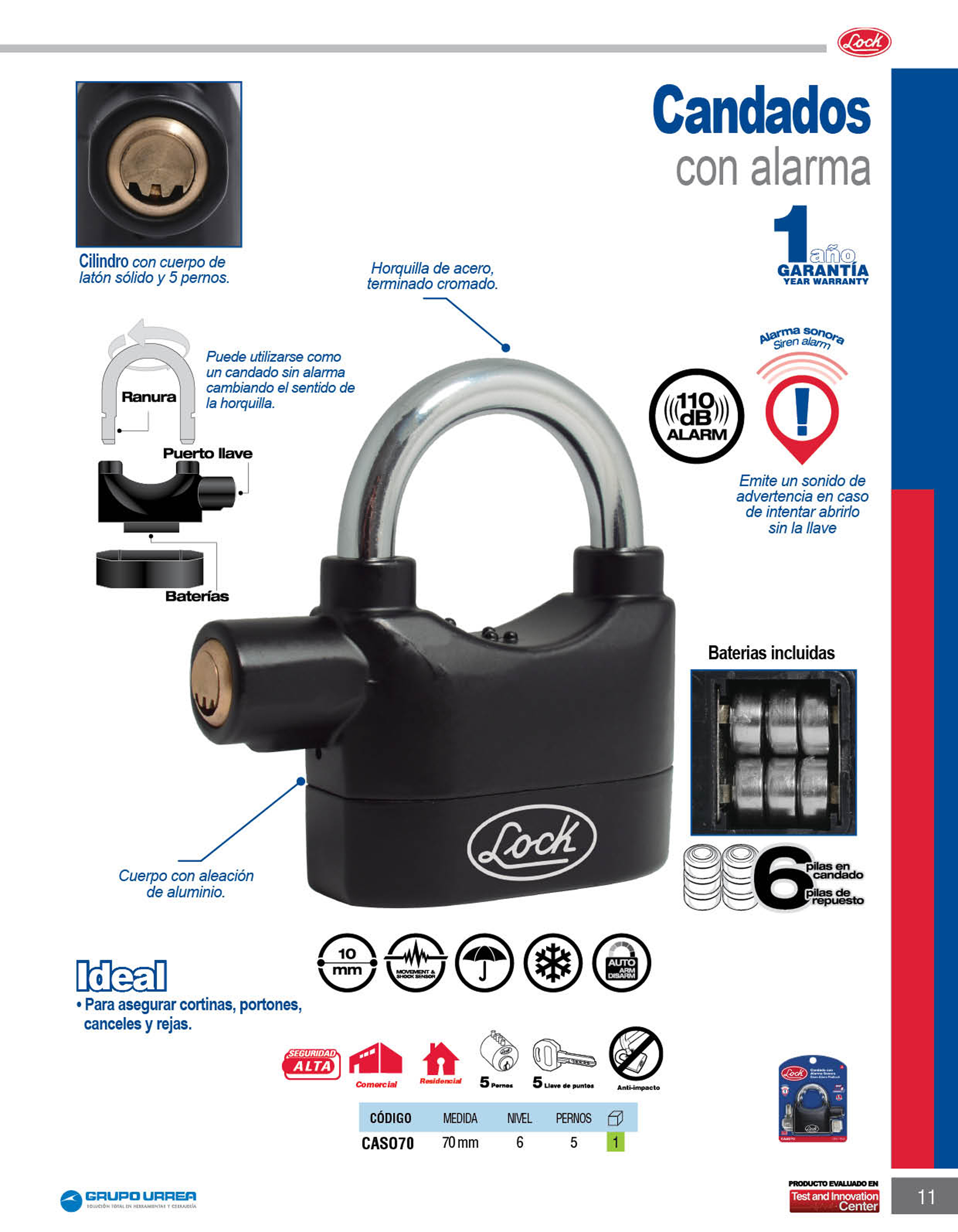 Candado con alarma de doble cerrojo 70 mm, llave de puntos Lock