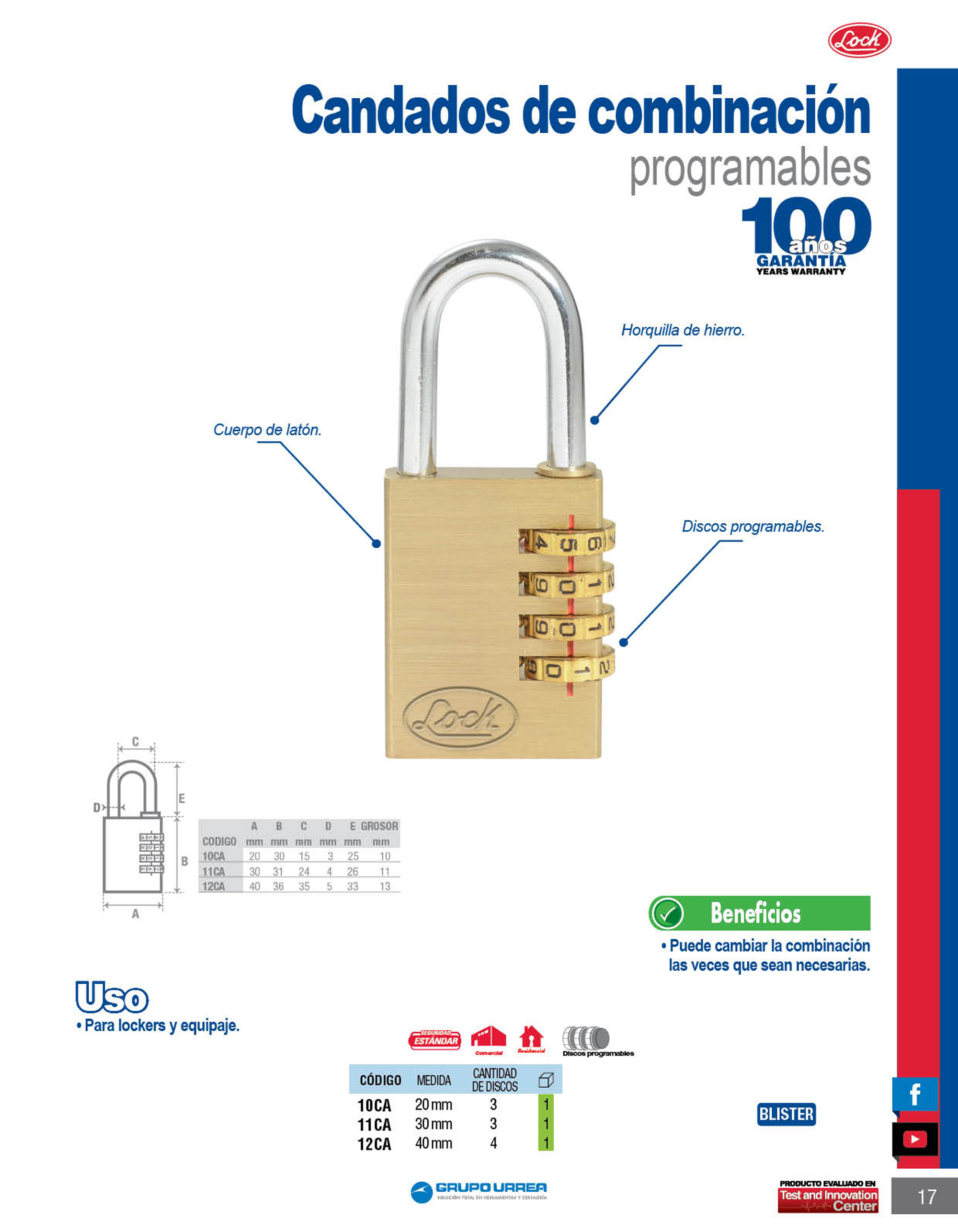 Candado de combinación programable para maleta, latón, 30 mm Lock