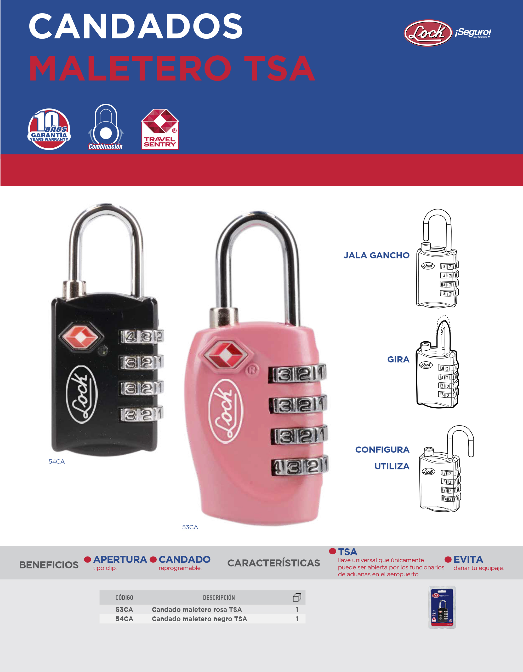 Candado TSA, manual de usuario.