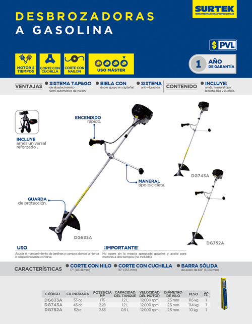 Desbrozadora a gasolina 17″ 52 cc Surtek