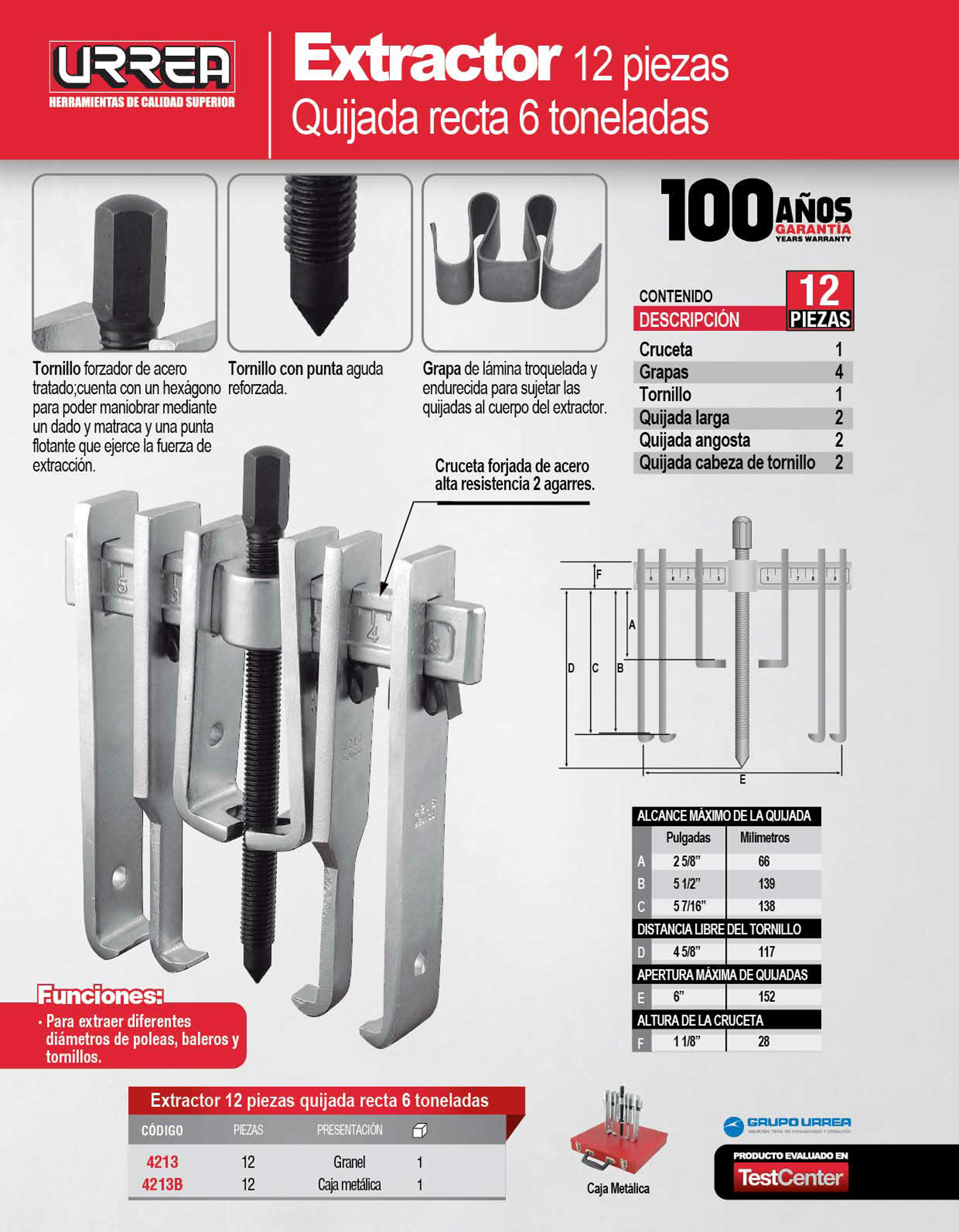 -Juego extractor quijada recta 6ton 12 pz caja metálica Urrea