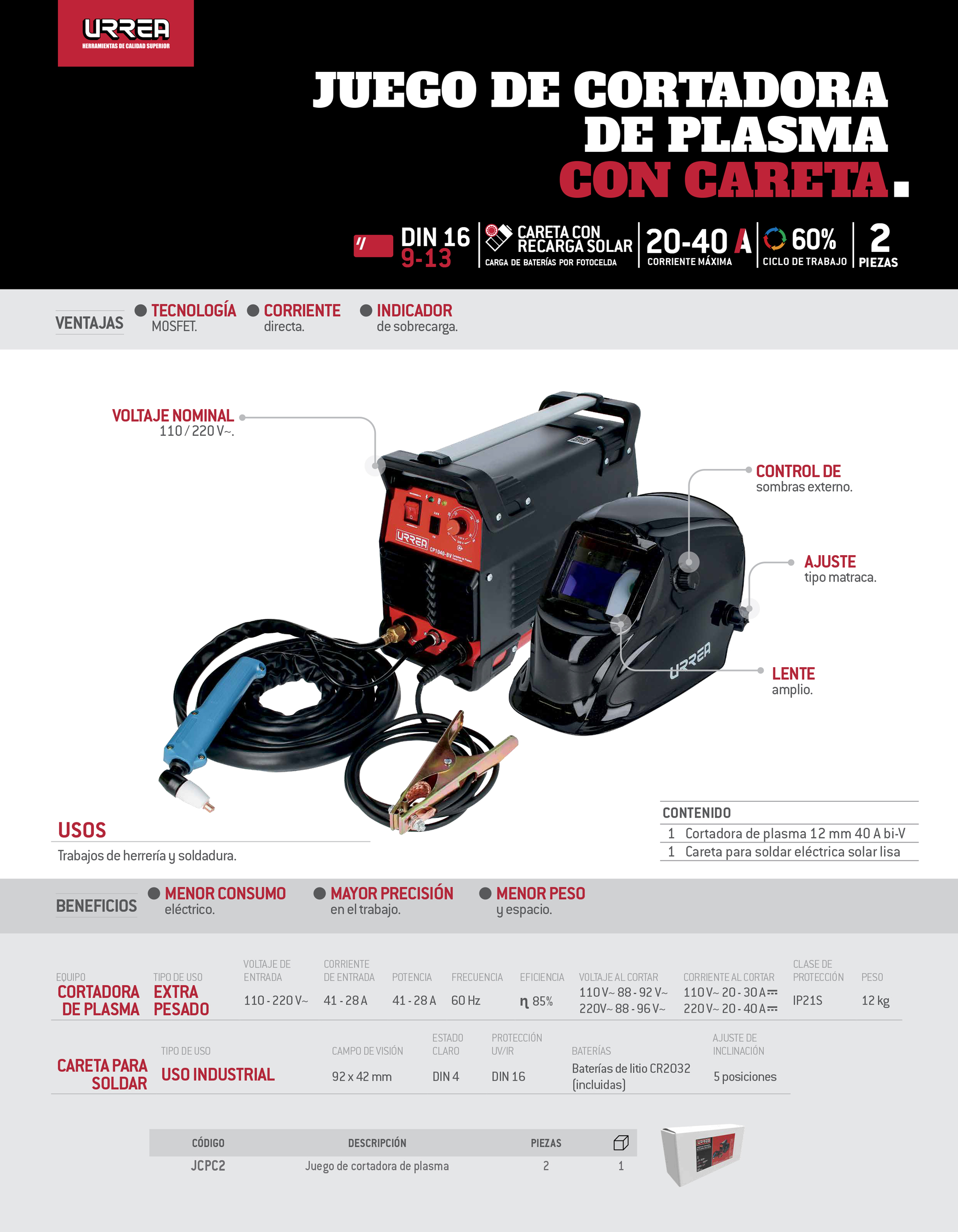 Juego de cortadora de plasma con careta, 2 piezas Urrea