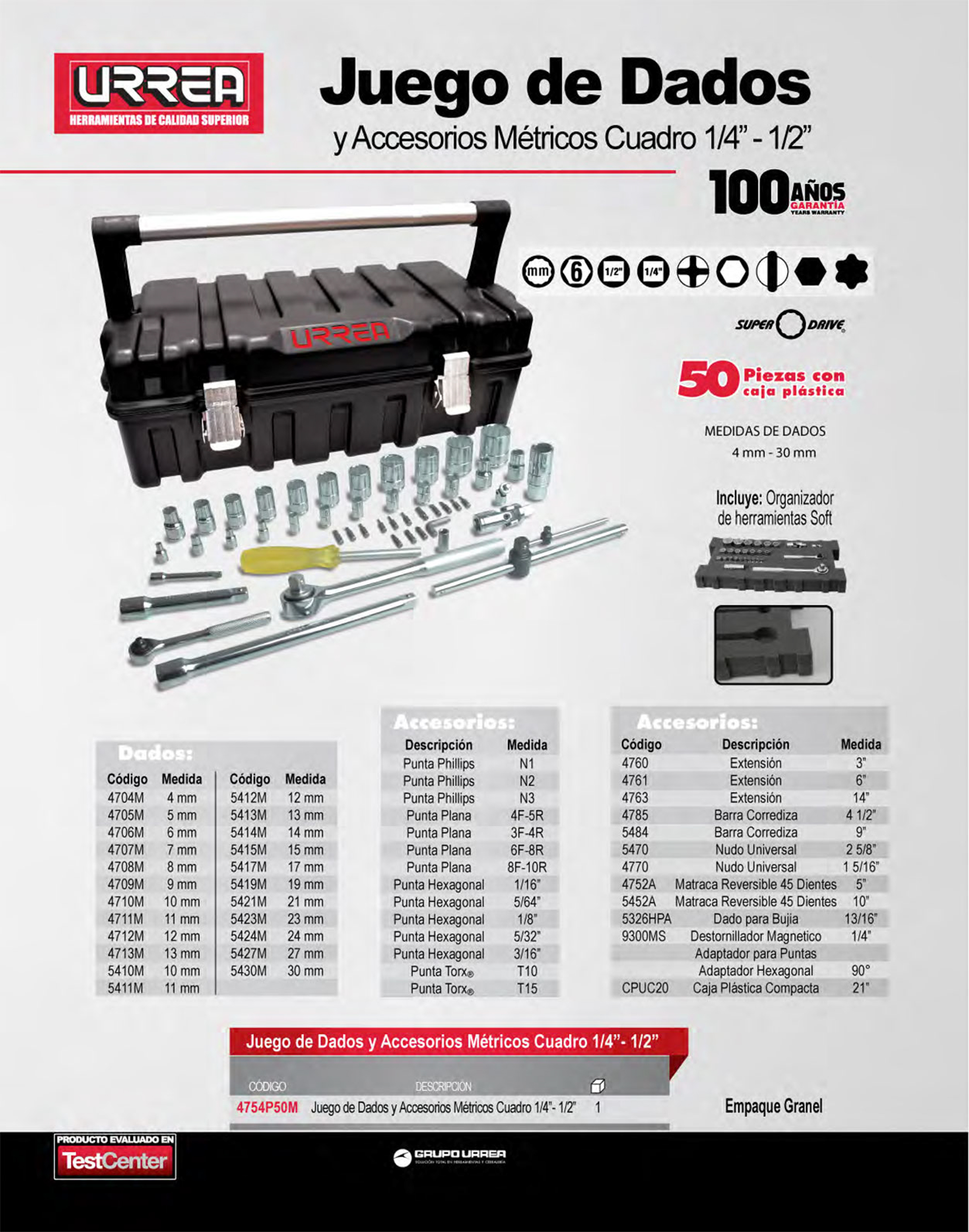-Juego de 51 dados y accesorios métricos 1/4″-1/2″ Urrea