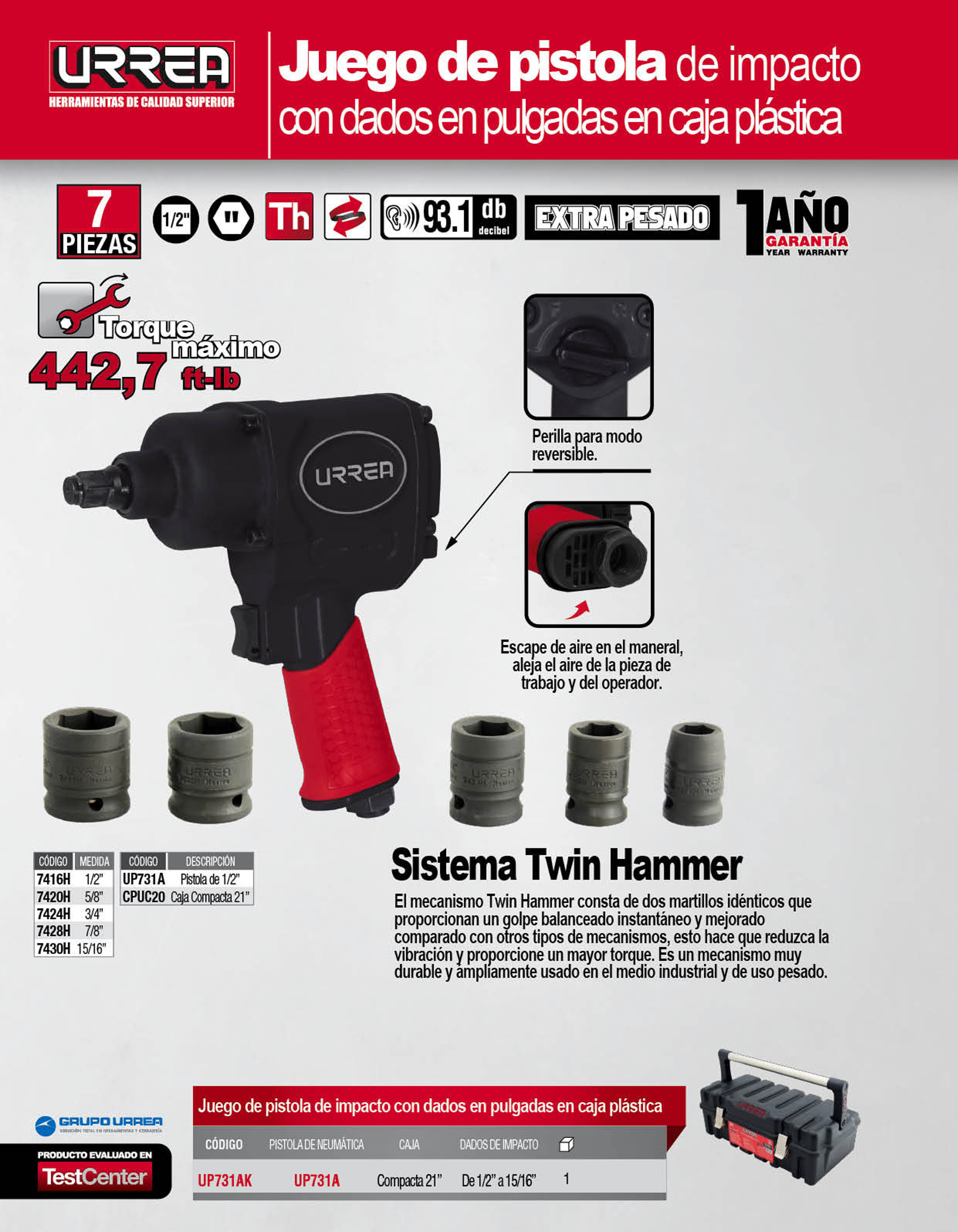 -Juego pistola neumática UPC731A de 1/2″ 10 pzs en pulg Urrea