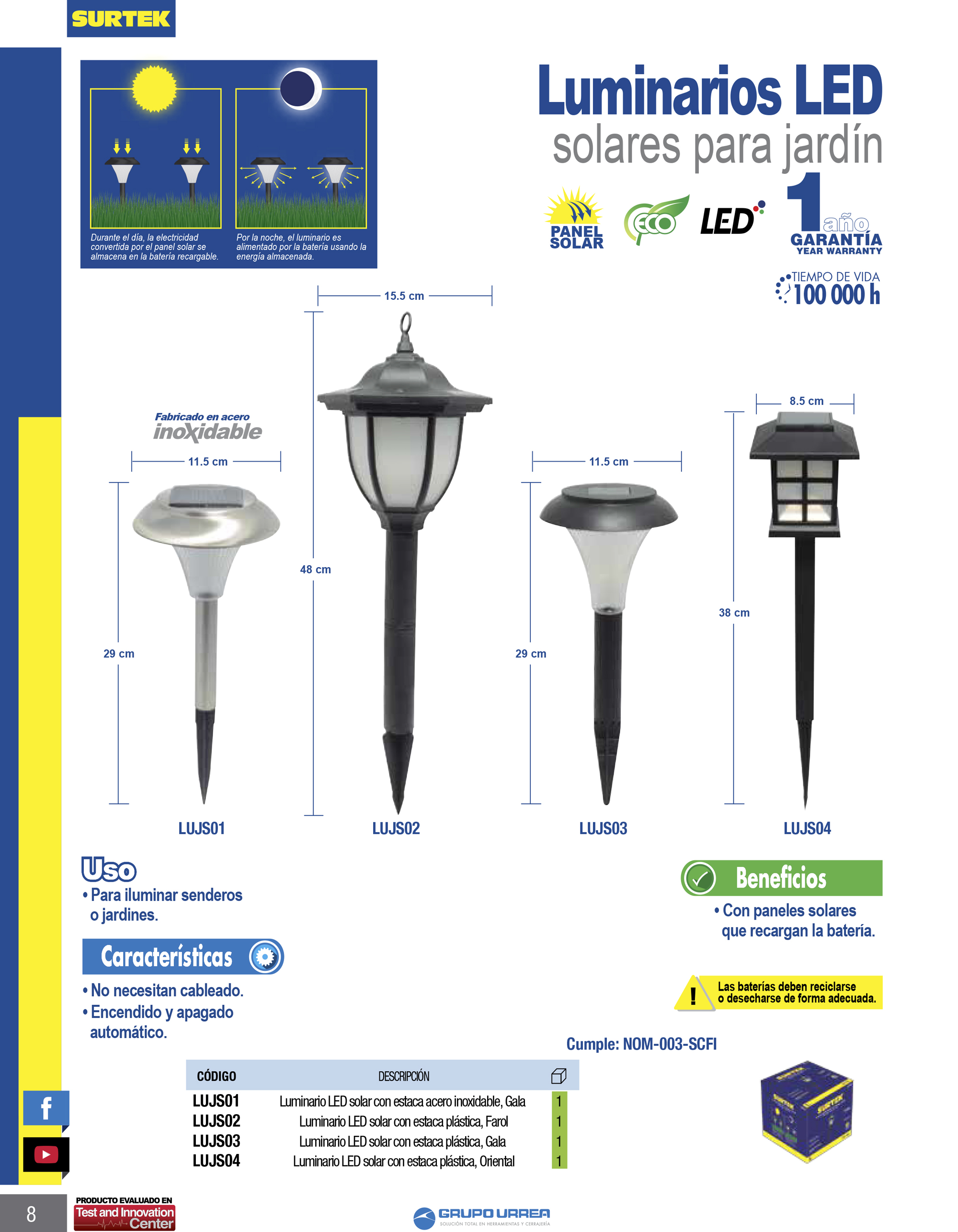 Luminario de LED estaca recargable solar tipo gala inoxidable Surtek