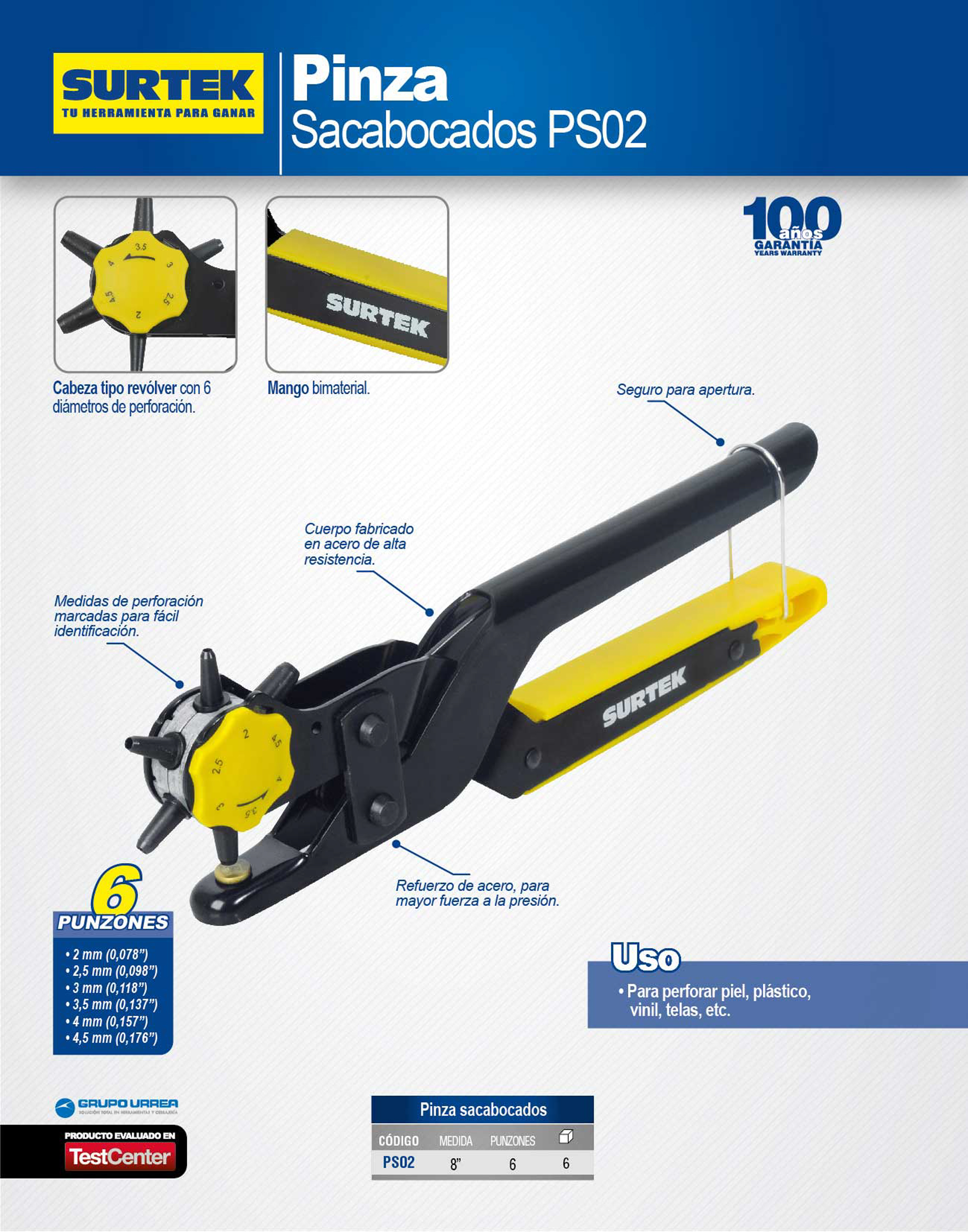 Pinza sacabocados tipo revolver con 6 medidas de perforación Surtek