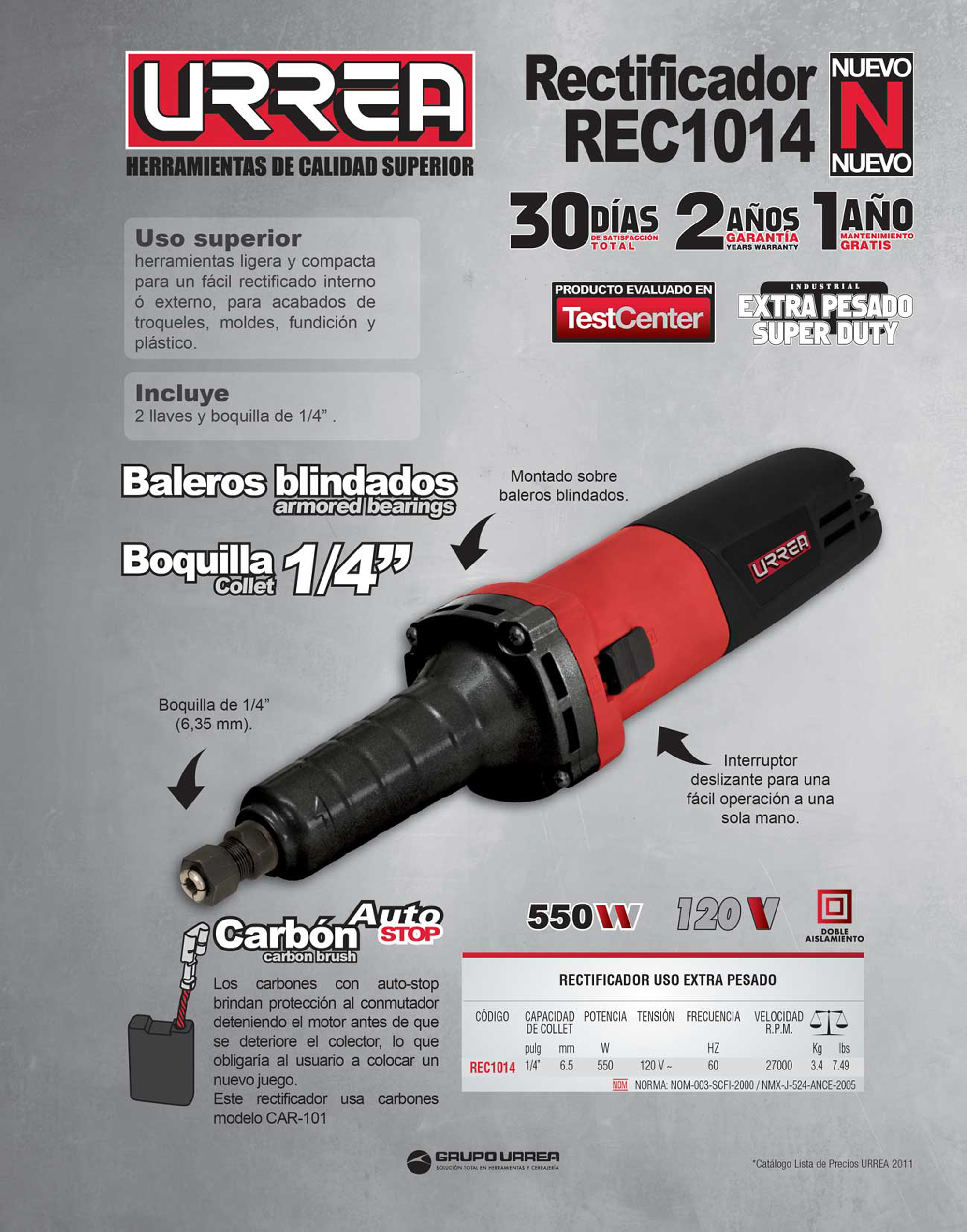 -Rectificador 1/4″ collet 550W 120V uso extra pesado Urrea.