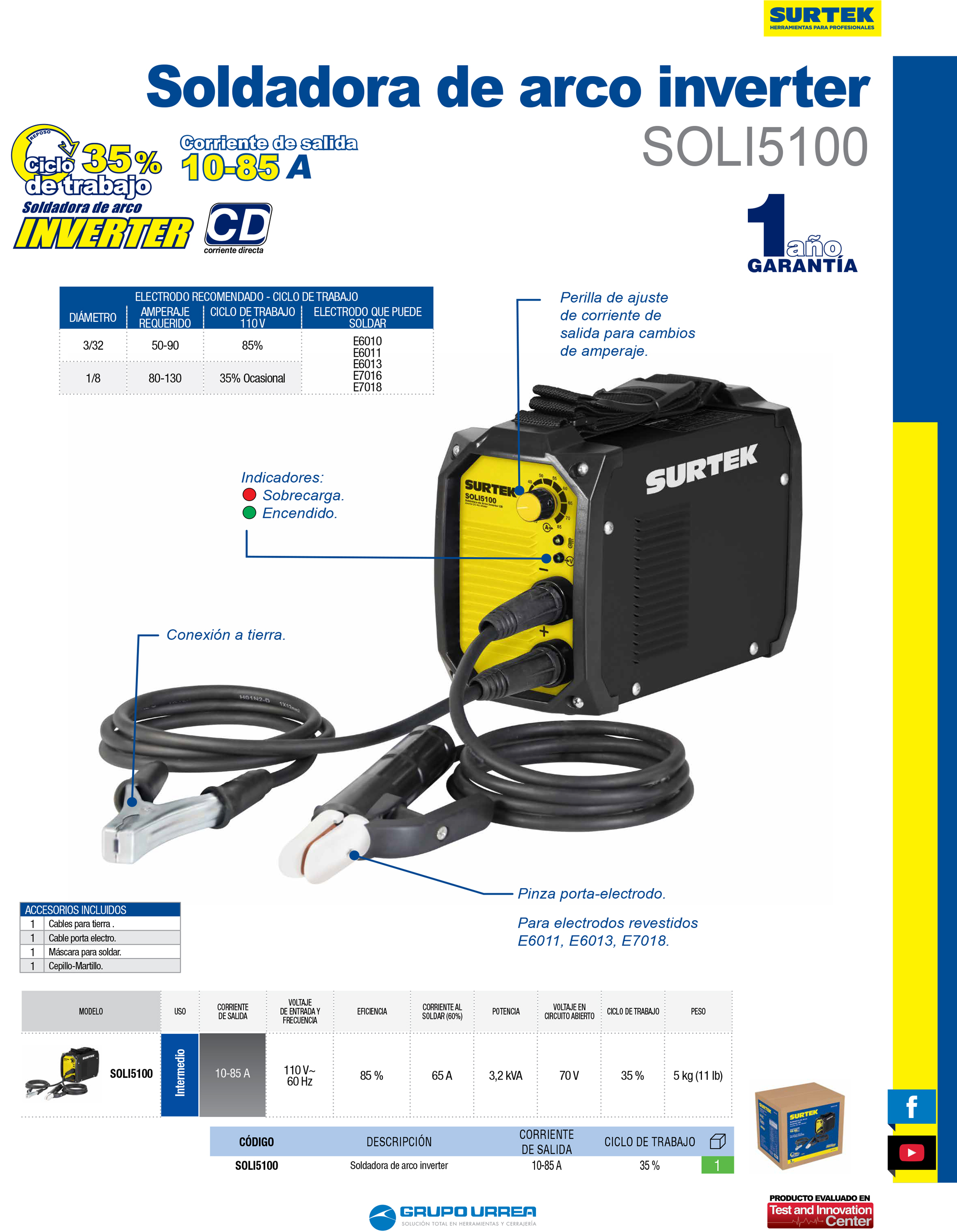 Soldadora inverter para electrodos 110 V 100 A Surtek
